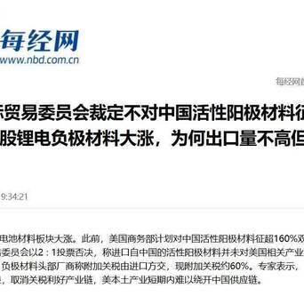 结果,美国自己宣布不制裁了,原因就是从中国进口的活性阳极材料,没有影响美国本土产业的建立,所以不能加征关税。