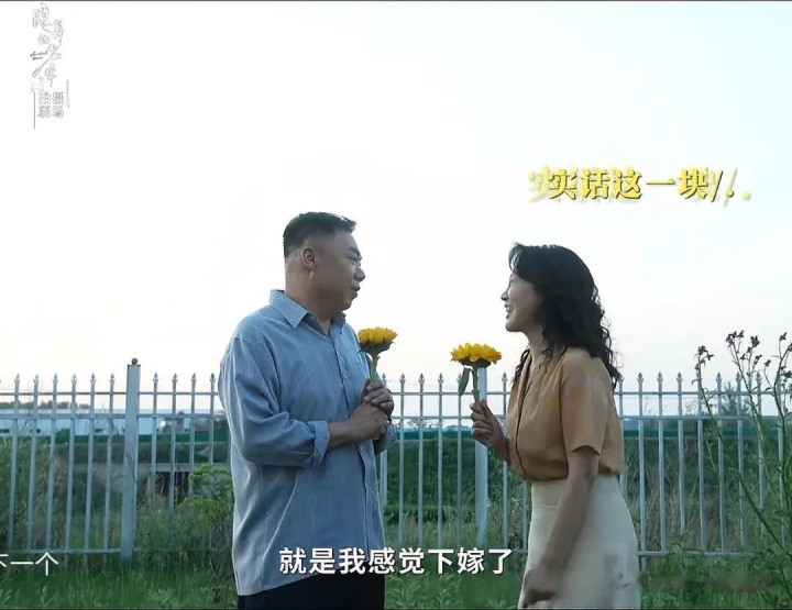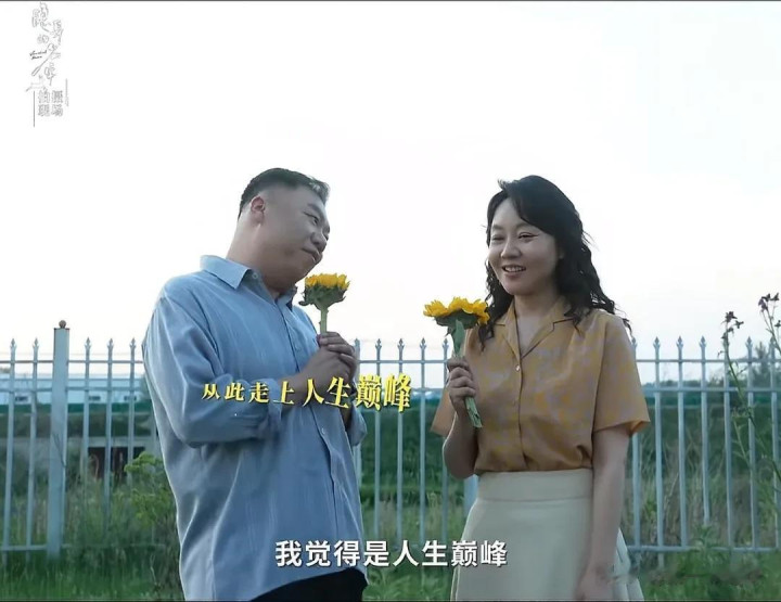 两人拿着向日葵当话筒相互采访,姜超说自己“一个厨子居然娶了老板娘,感觉走上了人生巅峰”,闫妮则笑说“那我就是下嫁了。”